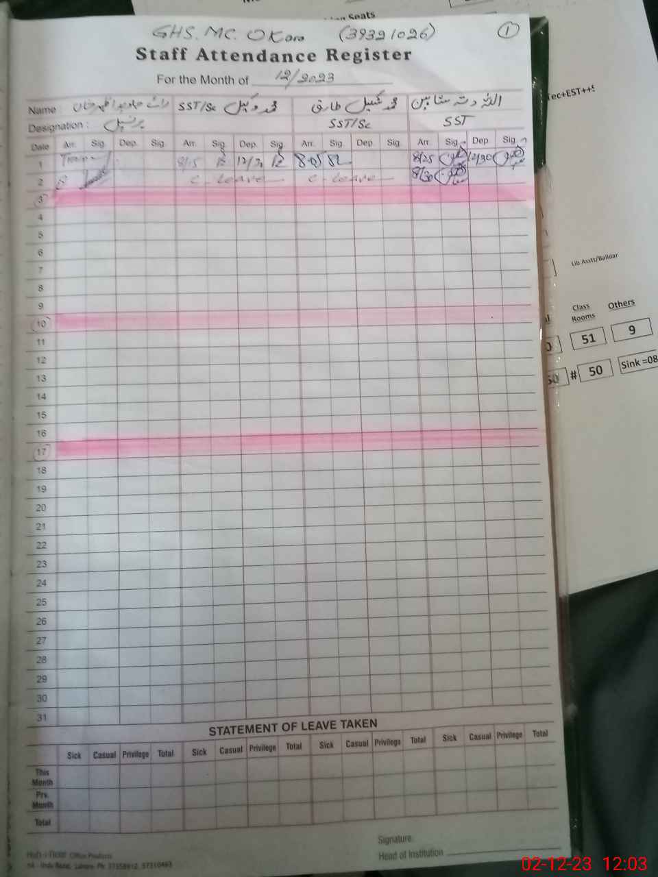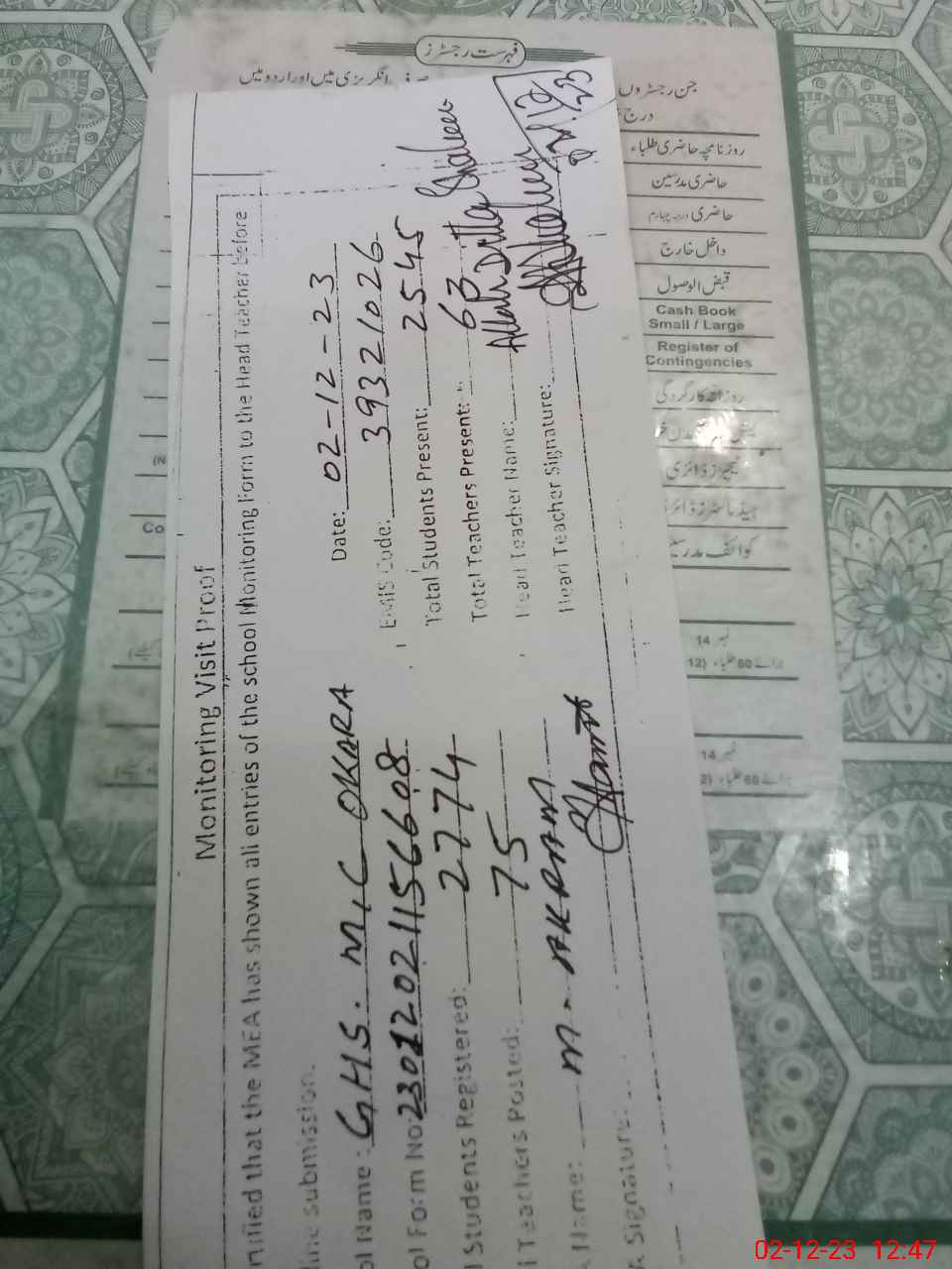 | EMIS Code: 39321026 | Name of School: GHS M.C OKARA | |||