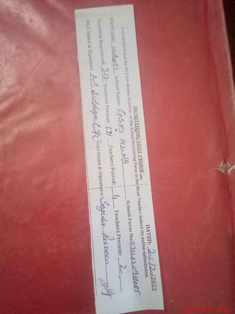 | EMIS Code: 38440093 | Name of School: GGES CHAK NO.142 NB | |||