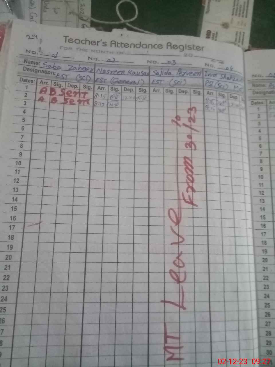 | 38**** | Sa**** Za**** | 1 | 19 | 0 | 11 | 0 | 19 | 0 | 0 | 0 | 0 | Absent (Un-Authorized) | |