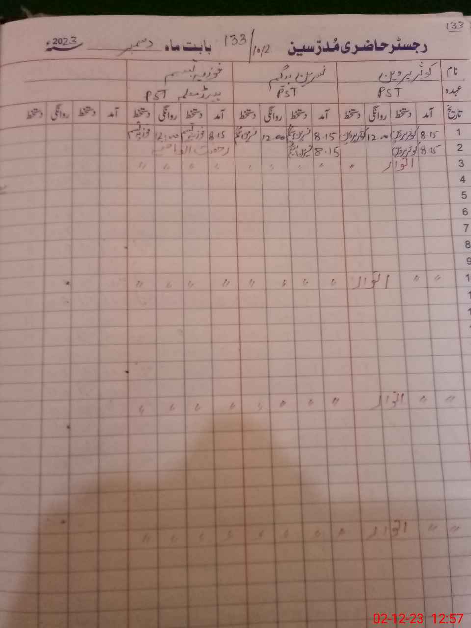 | CNIC | Full Name | Designation | R/C | Absence During Last Calender Month |