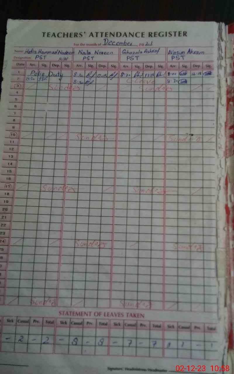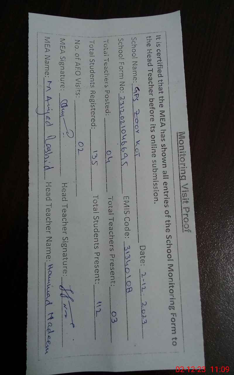 | EMIS Code: 31340108 | Name of School: GPS ZOOR KOT | |||