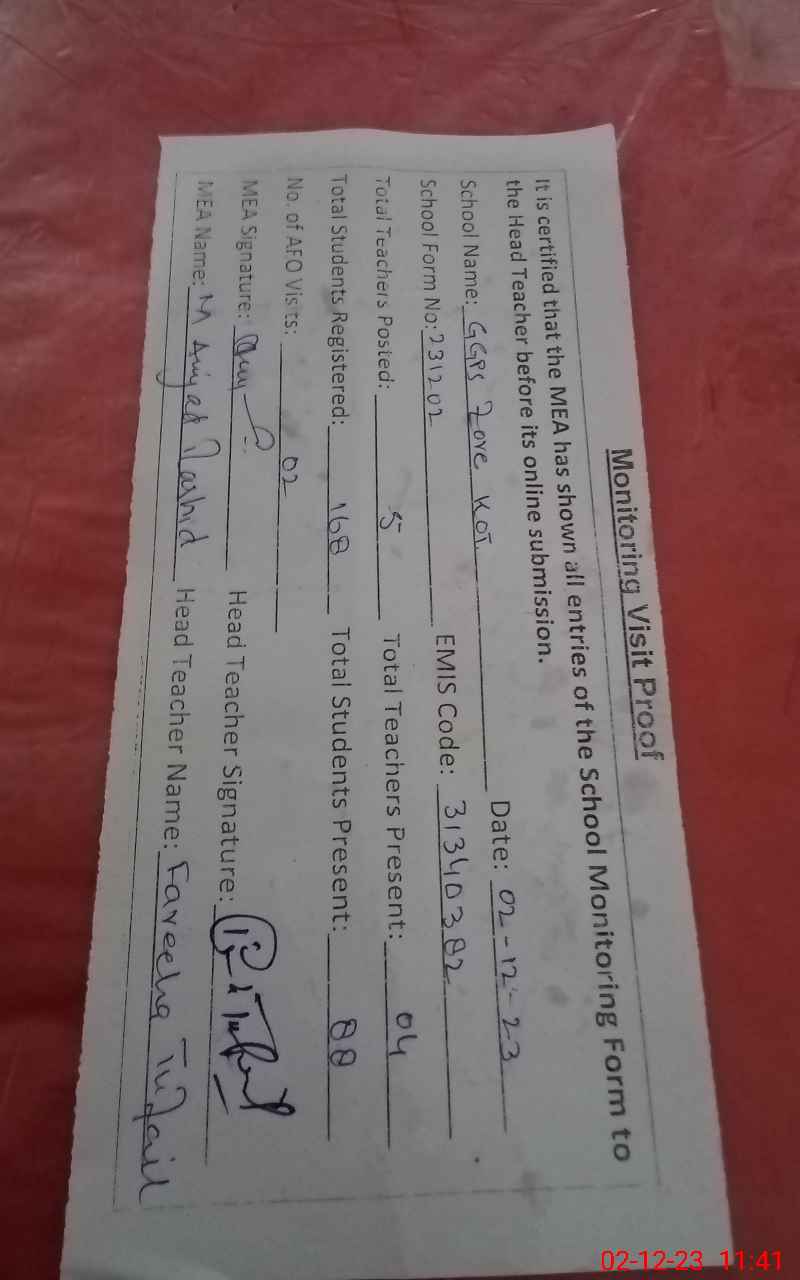 | EMIS Code: 31340382 | Name of School: GGPS ZORE KOT ZORE KOT | |||