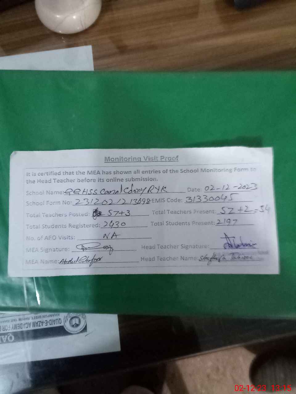 | EMIS Code: 31330045 | Name of School: GGHSS CANAL COLONY | |||