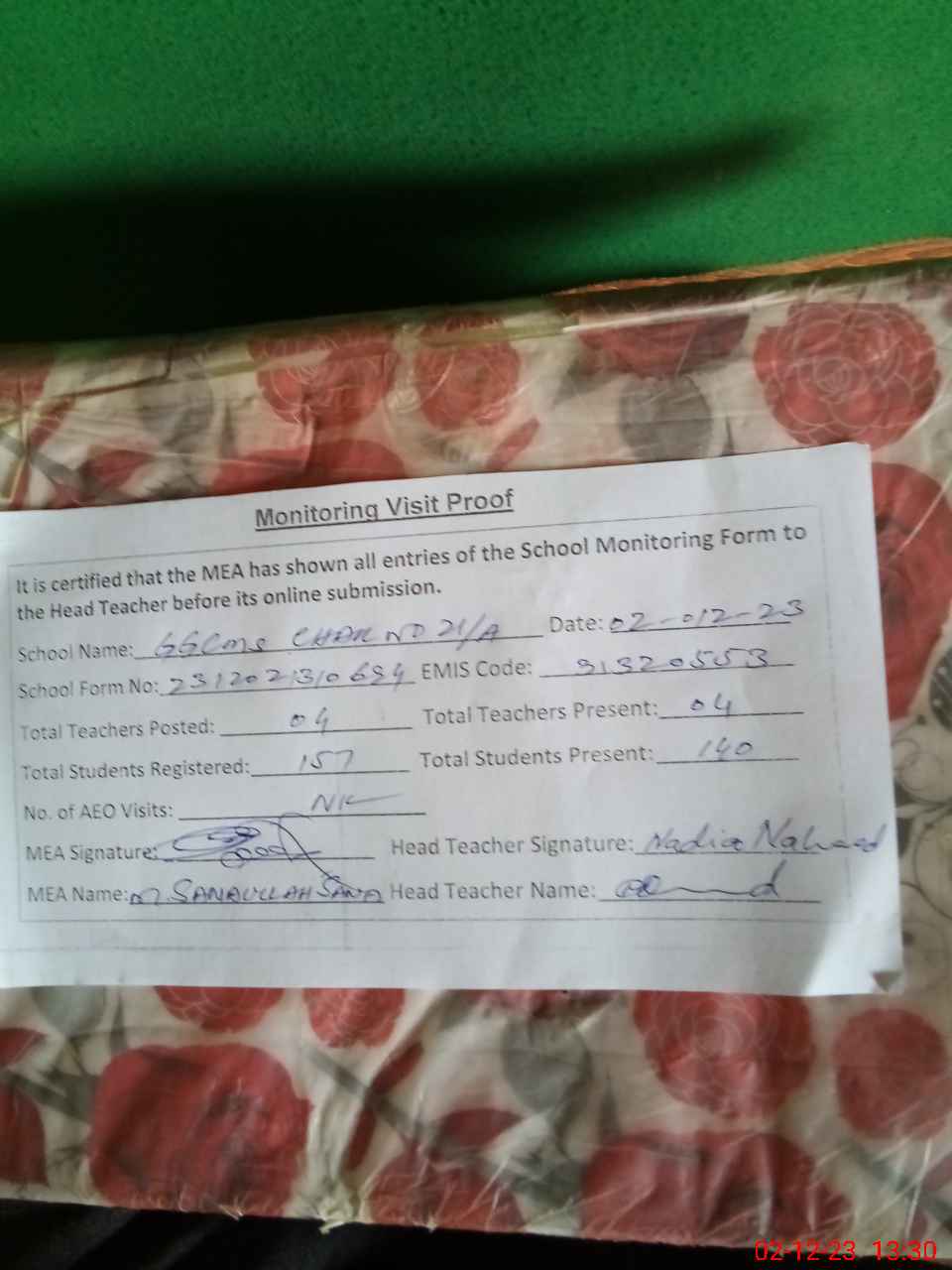 | EMIS Code: 31320553 | Name of School: GGCMS CHAK NO. 21/A | |||
