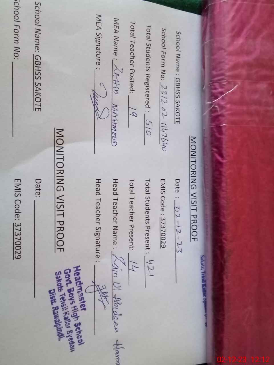 | EMIS Code: 37370029 | Name of School: GHSS SAKOTE | |||