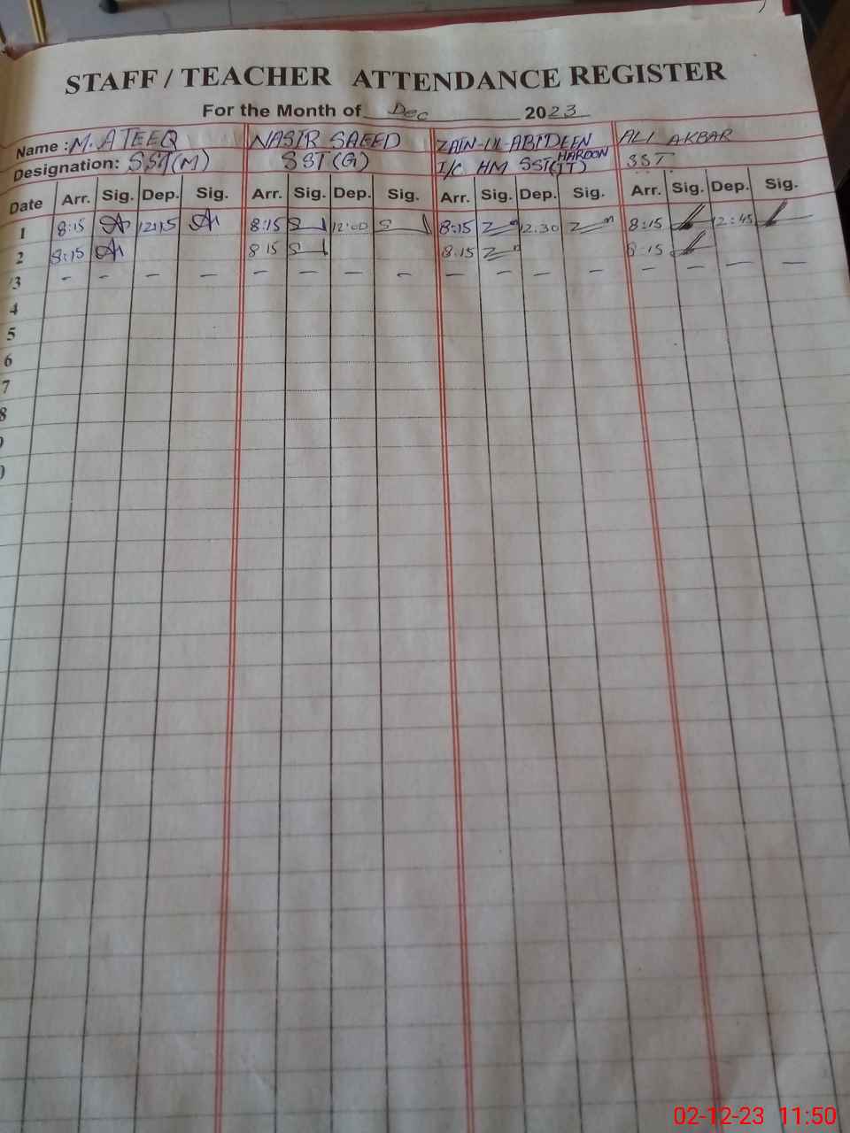 | Name: Za**** UlAb**** Ha**** Designation: (School Headmaster's/Headmistress's) I/C HEADMASTER Phone/Cell Number: 03**** |