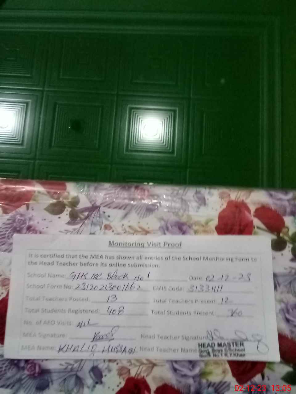 | EMIS Code: 31331111 | Name of School: GHS MC BLOCK NO. 1 | |||
