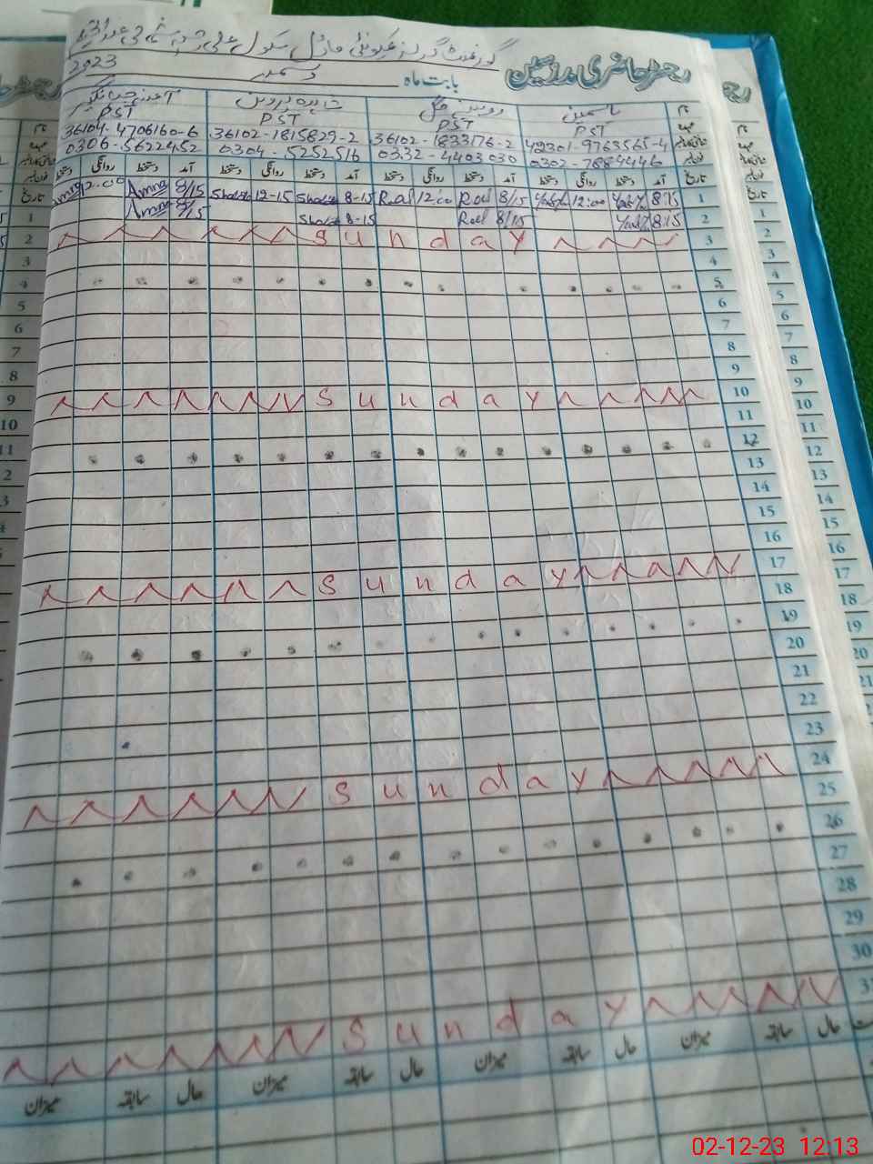 | CNIC | Full Name | Designation | R/C | Absence During Last Calender Month |