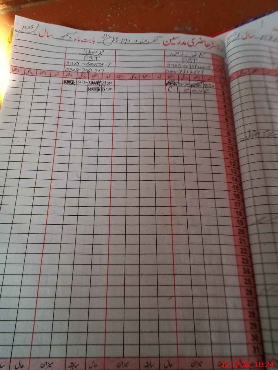 | CNIC | Full Name | Designation | R/C | Absence During Last Calender Month |