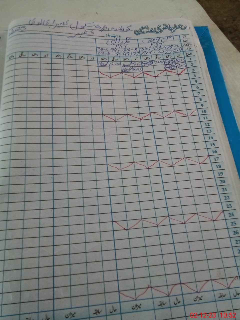 | CNIC | Full Name | Designation | R/C | Absence During Last Calender Month |