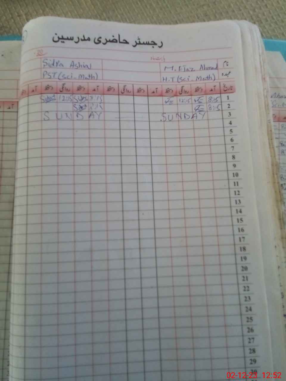 | CNIC | Full Name | Designation | R/C | Absence During Last Calender Month |