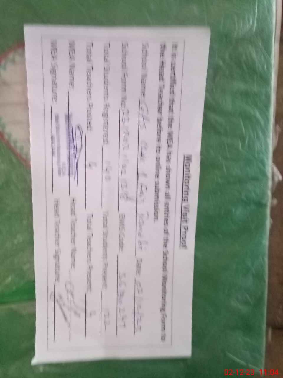 | Attendance Register | Head Teacher | MEA with School | Visit Proof |