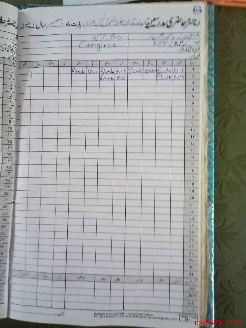 | CNIC | Full Name | Designation | R/C | Absence During Last Calender Month |