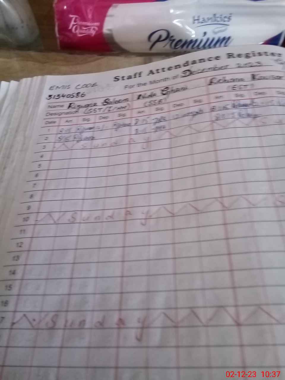 | Name: Su**** Na**** Designation: (School Headmaster's/Headmistress's) Head Mistress Phone/Cell Number: 03**** |