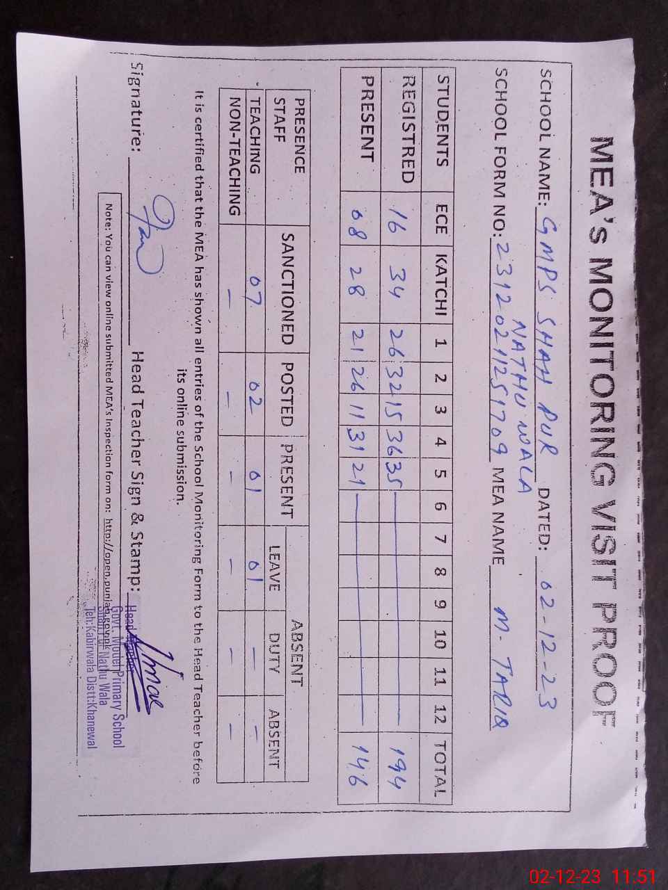 | EMIS Code: 36410368 | Name of School: GMES SHAH PUR NATHU, P/O HAJI PUR NATHU, KABIRWALA | |||