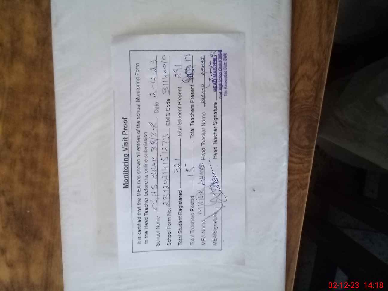 | EMIS Code: 31140010 | Name of School: GHS CHAK 38/3R | |||