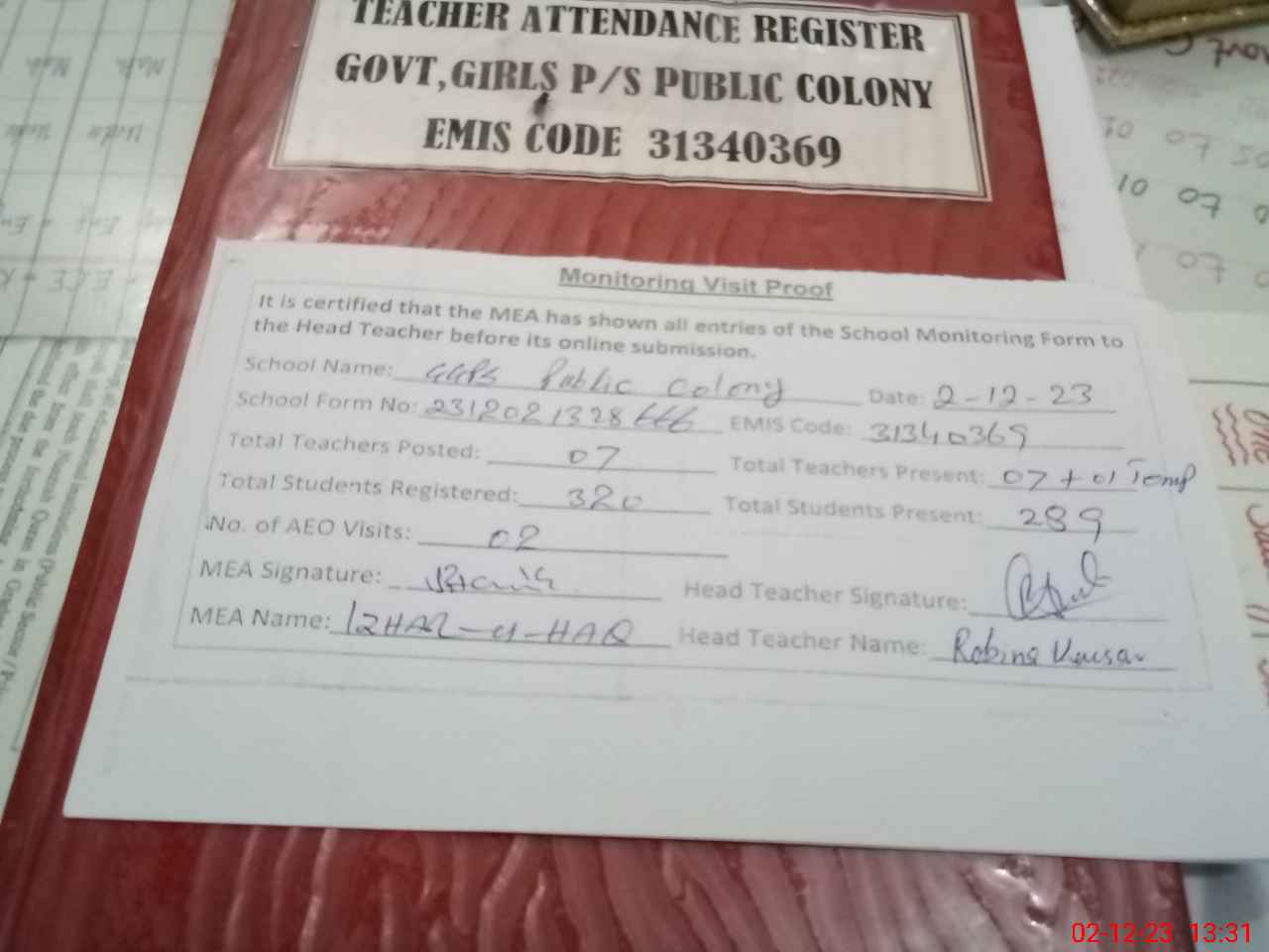| EMIS Code: 31340369 | Name of School: GGPS PUBLIC COLONY | |||