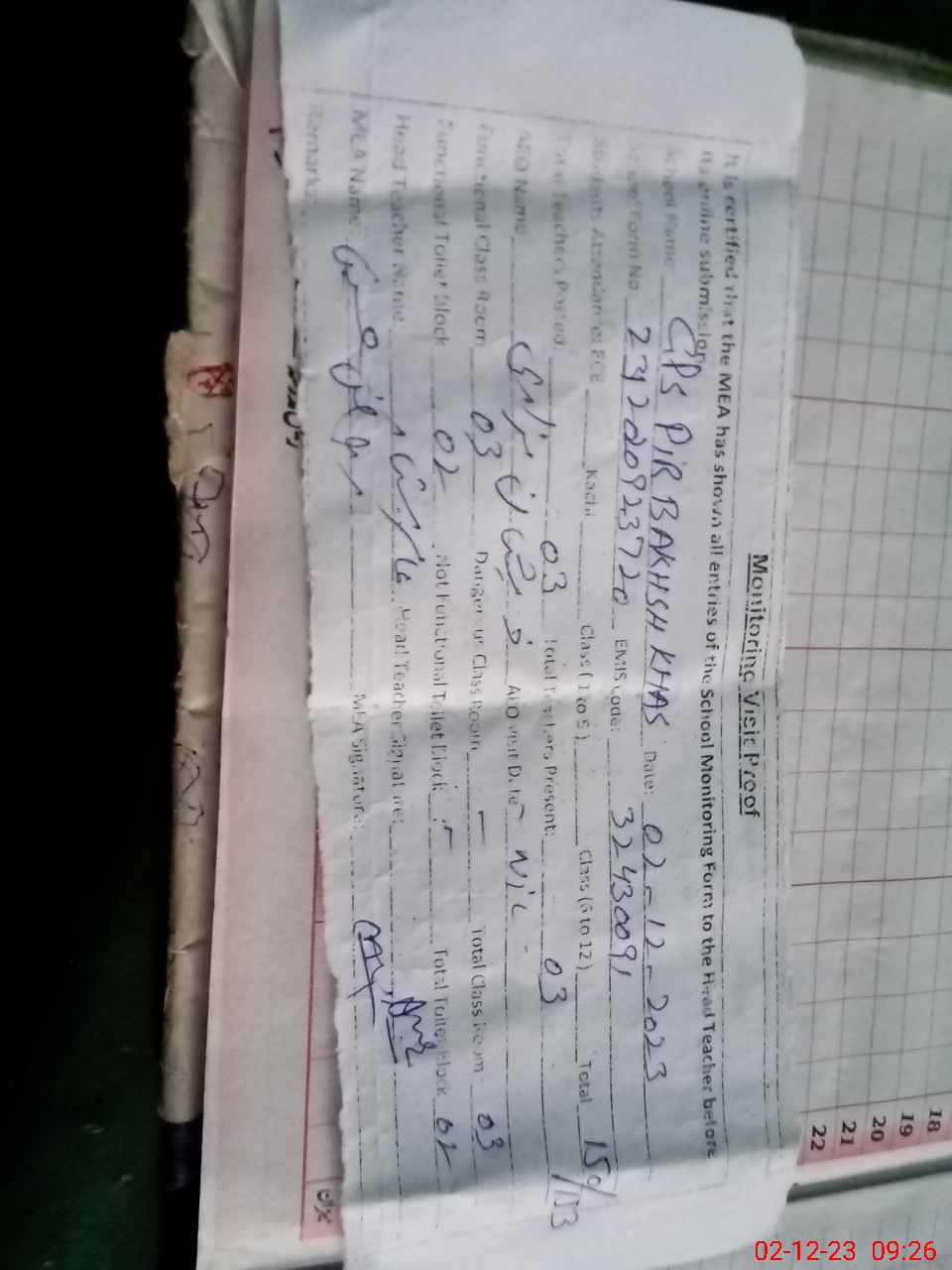 | EMIS Code: 32430091 | Name of School: GPS PIR BAKHSH KHAS | |||