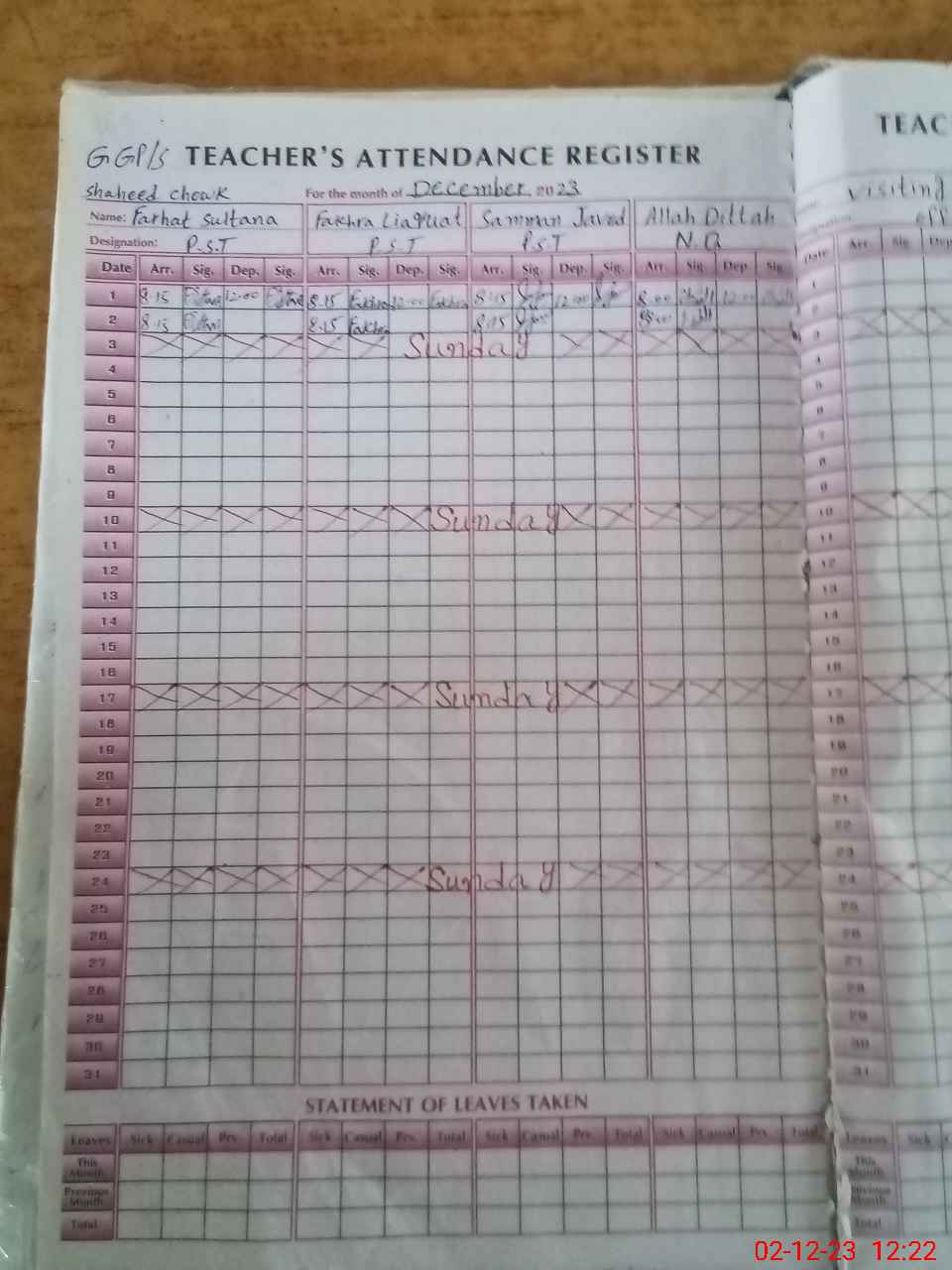 | EMIS Code: 31140454 | Name of School: GGPS CHOWK SHAHEED | |||