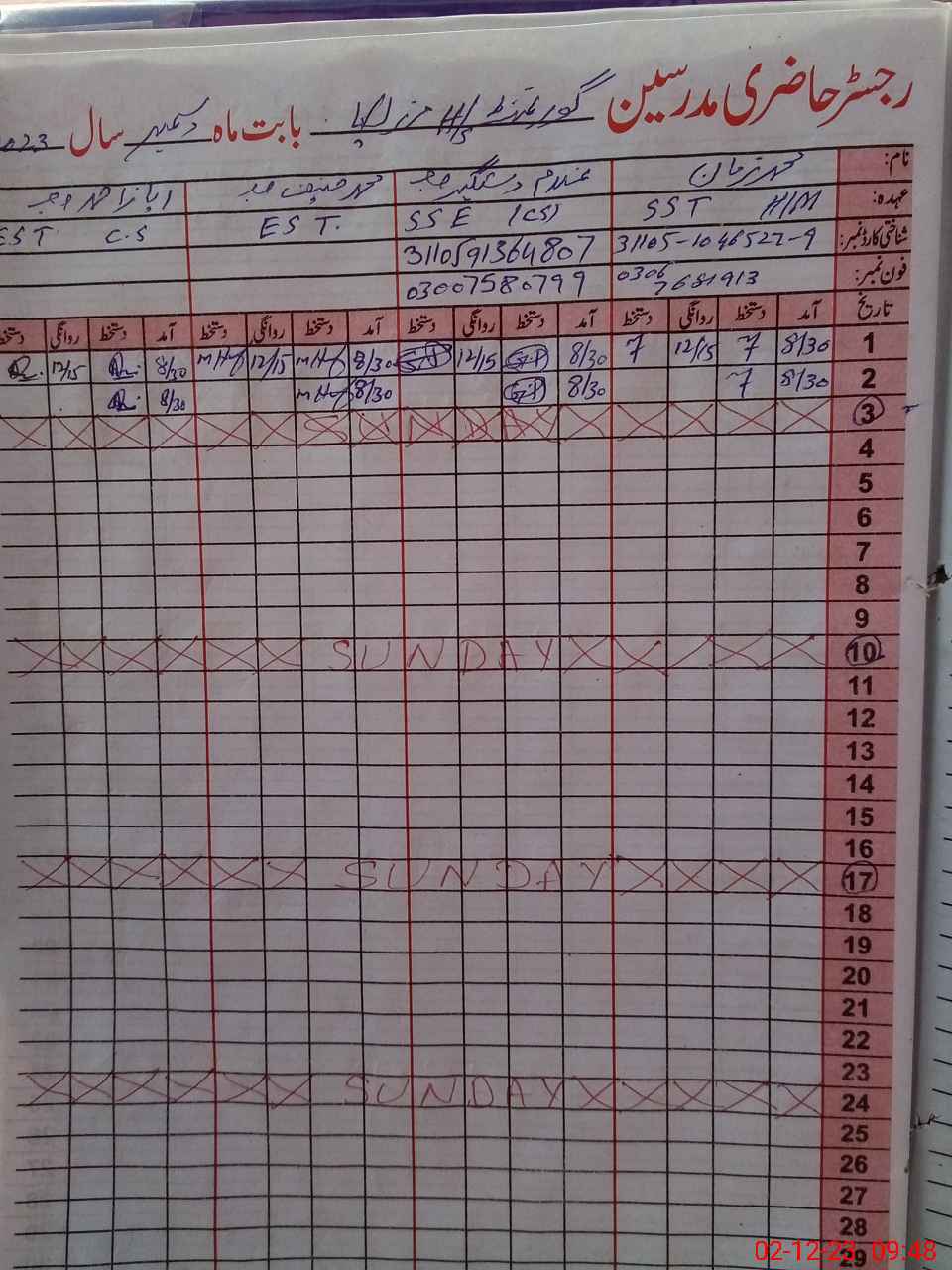 | Name: Mu**** Za**** Designation: (School Headmaster's/Headmistress's) SST Phone/Cell Number: 03**** |