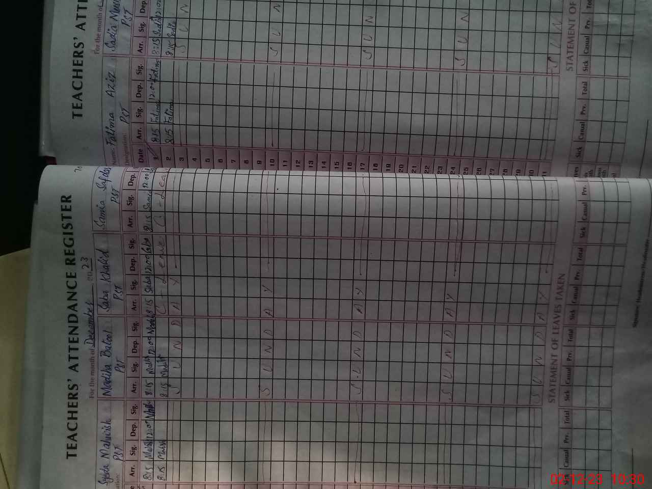 | 35**** | Zu**** Ta**** | 1 | 14 | 0 | 0 | 0 | 0 | 0 | 0 | 13 | 1 | Absent (Un-Authorized) | |