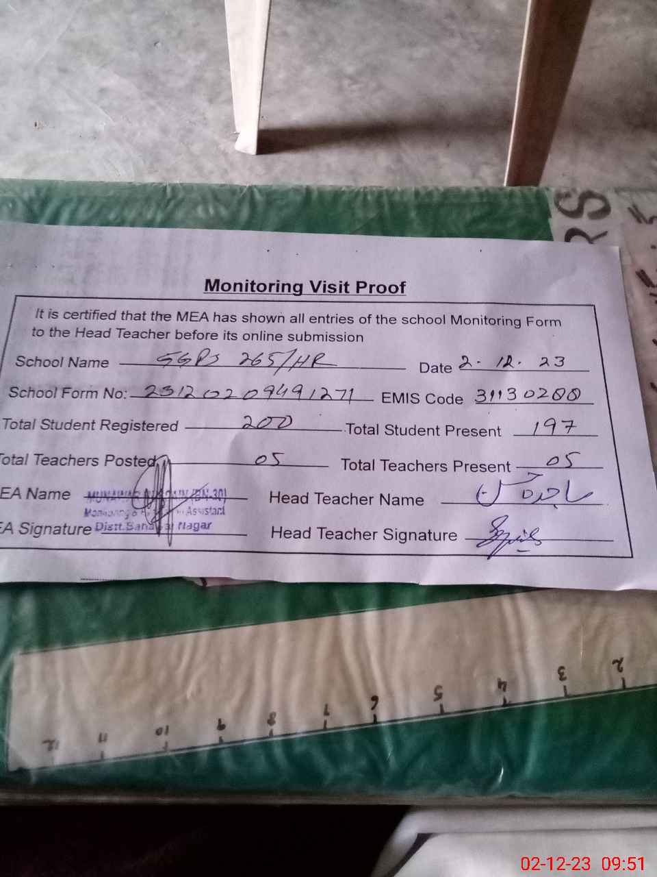 | EMIS Code: 31130288 | Name of School: GGPS CHAK NO 265 HR | |||