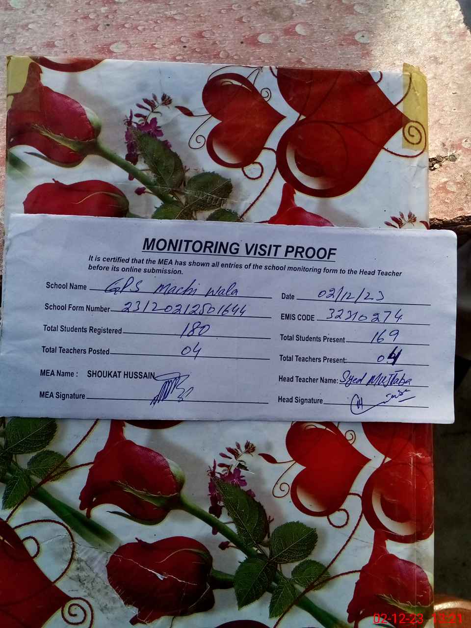 | EMIS Code: 32310274 | Name of School: GPS MACHI WALA | |||