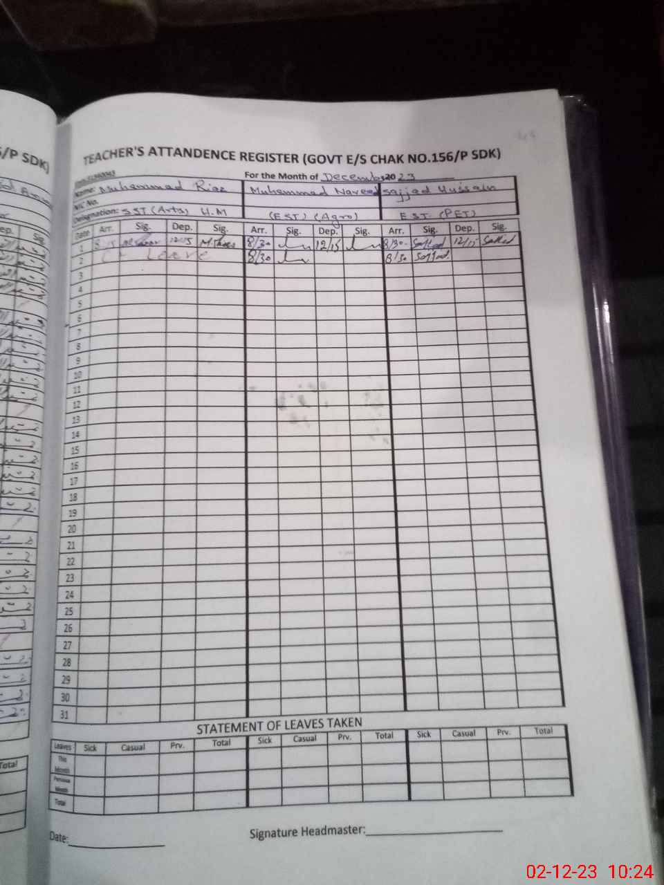 | Name: Mo**** Ri**** Designation: (School Headmaster's/Headmistress's) SST Phone/Cell Number: 03**** |