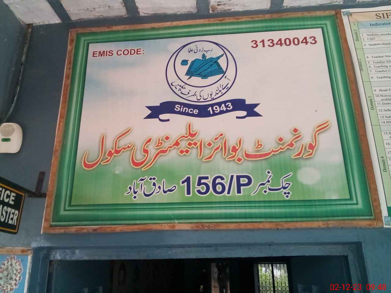 | EMIS Code: 31340043 | Name of School: GES CHAK NO 156/P SADIQABAD | |||
