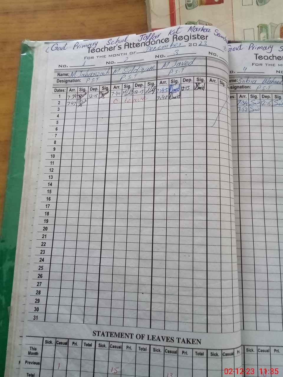 | 31**** | Qa**** Sh**** | PST | Regular | 2 | 0 | 0 | 0 | 0 | 0 | 0 | 0 | 2 | Casual |