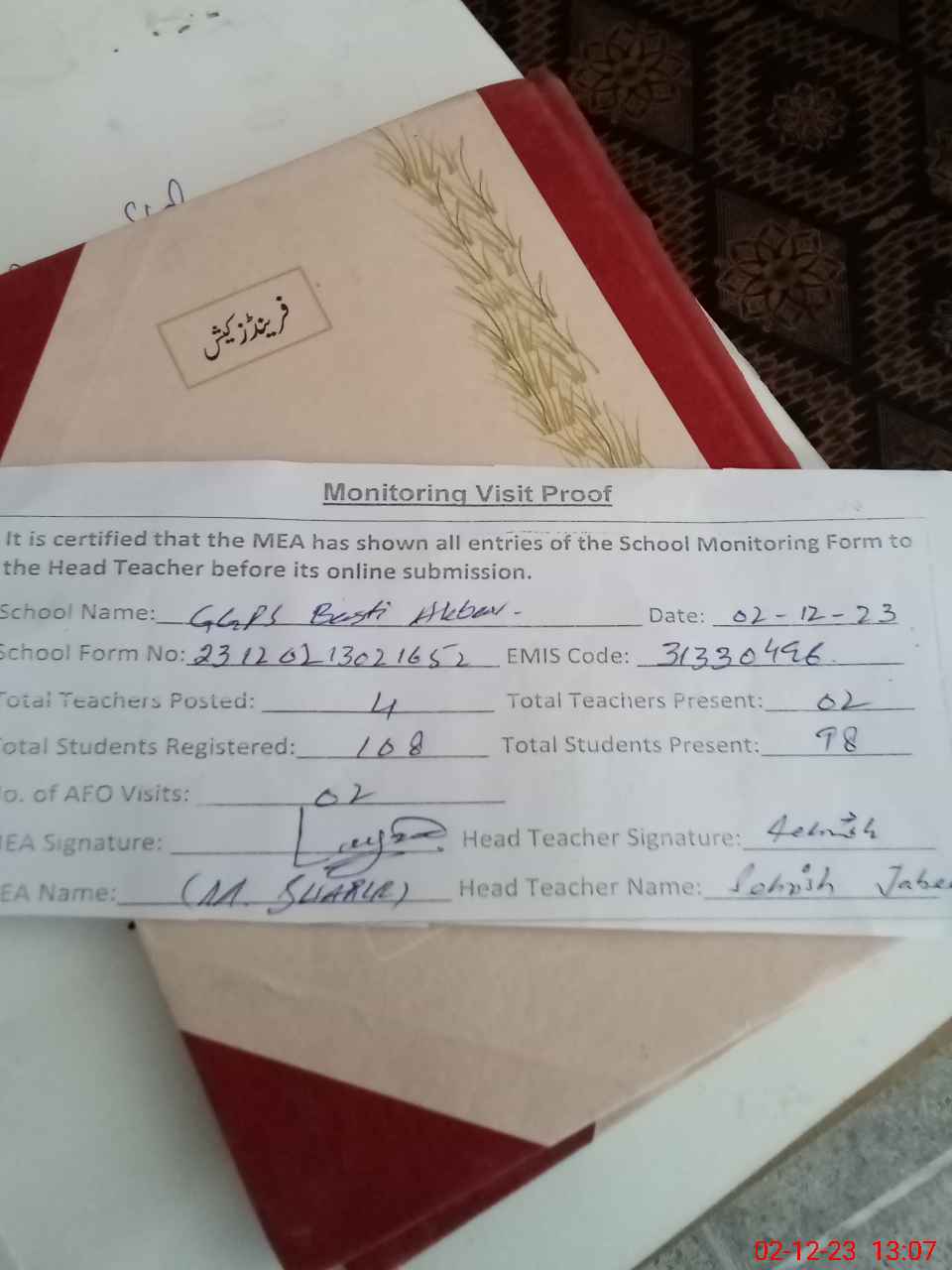 | EMIS Code: 31330496 | Name of School: GGPS BASTI AKBAR ALI | |||