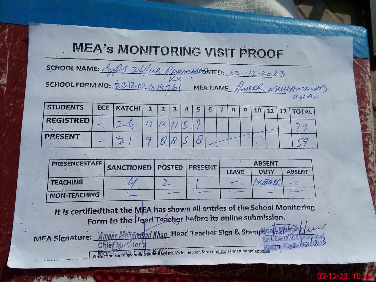 | EMIS Code: 36420235 | Name of School: GPS 26/10-R RAHIM ABAD, KACHA KHUH | |||