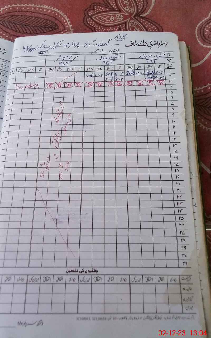 | CNIC | Full Name | Designation | R/C | Absence During Last Calender Month |