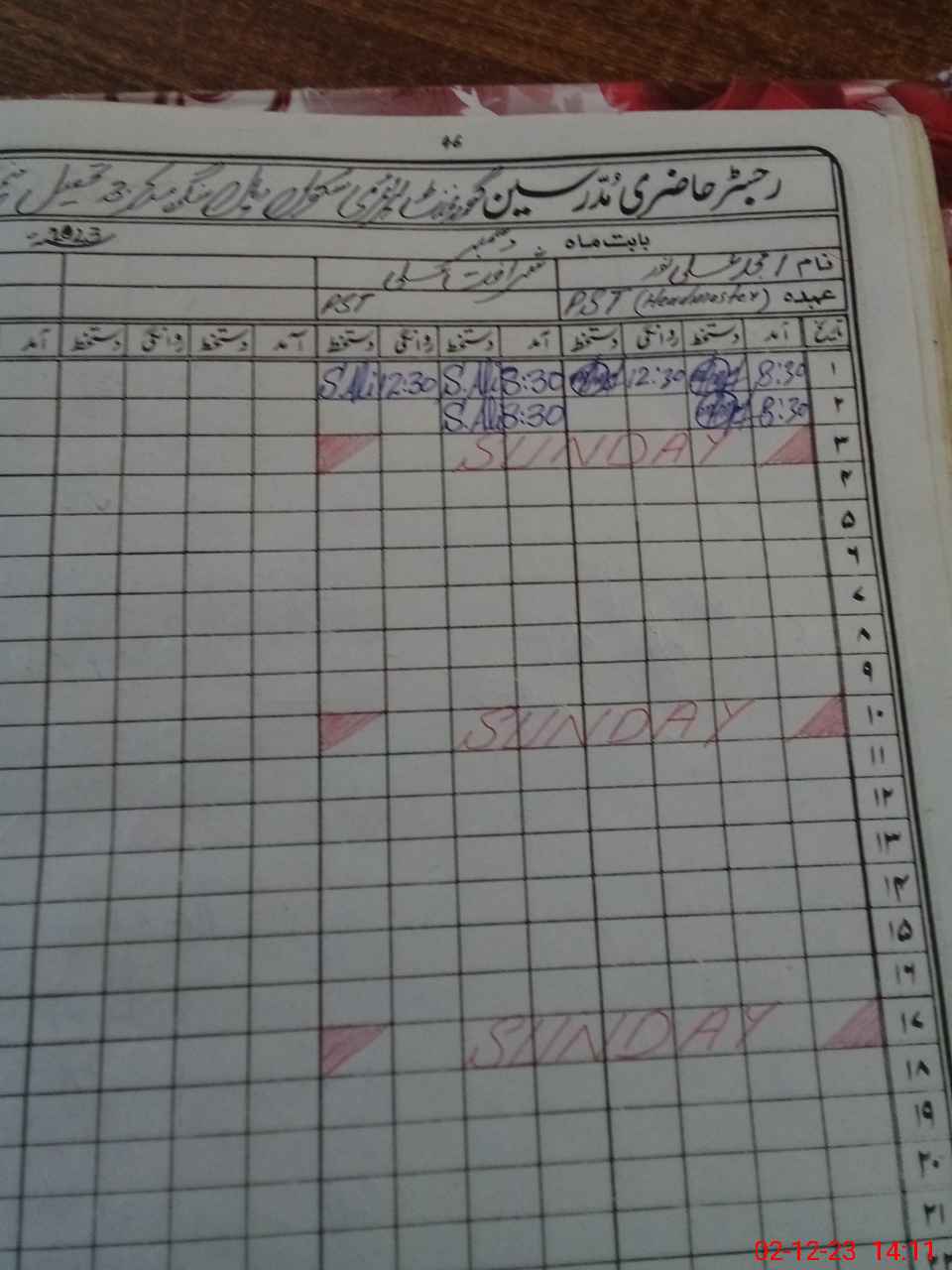 | Name: AM**** AL**** Designation: (School Headmaster's/Headmistress's) PST Phone/Cell Number: 03**** |