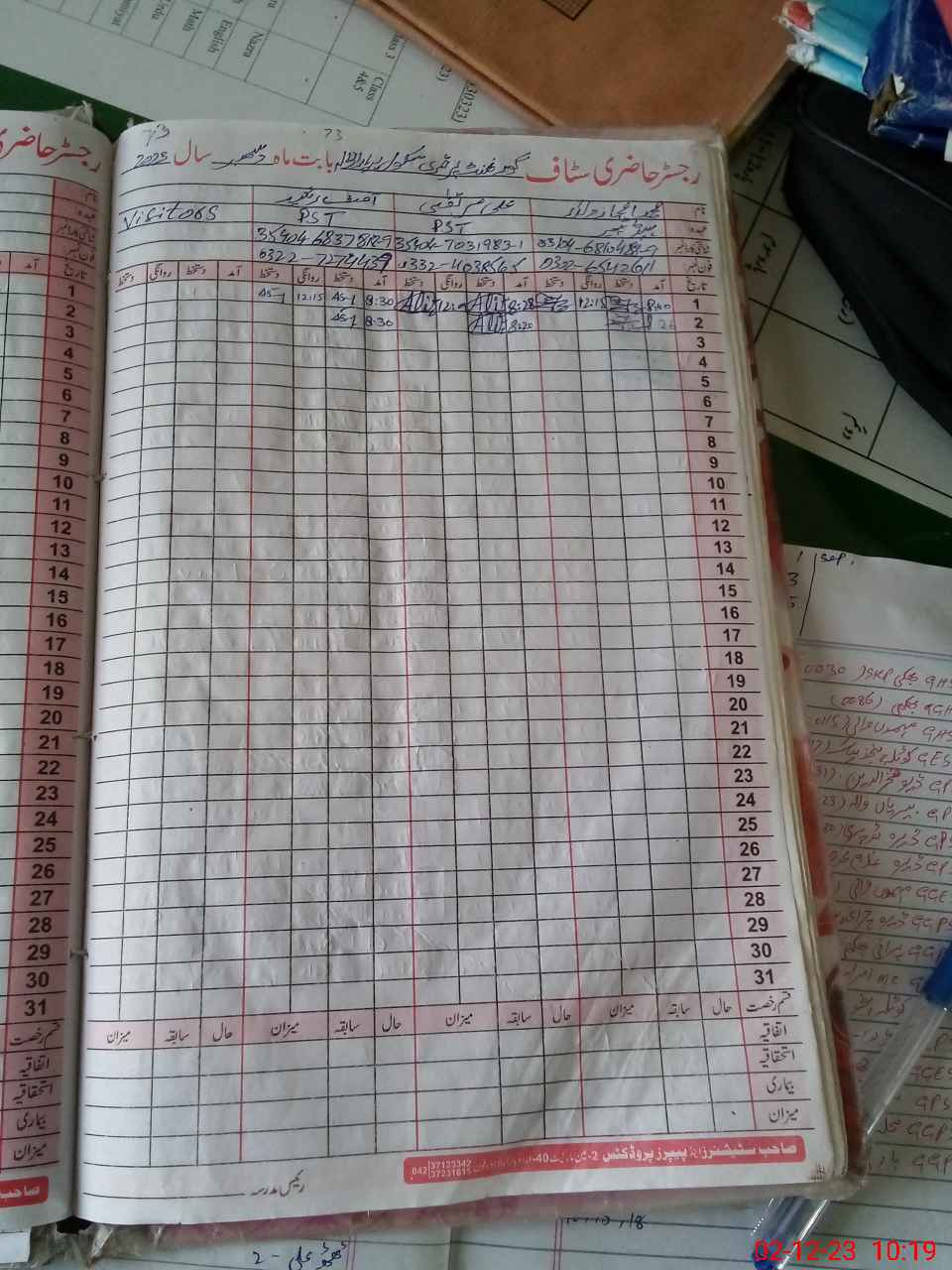 | CNIC | Full Name | Designation | R/C | Absence During Last Calender Month |