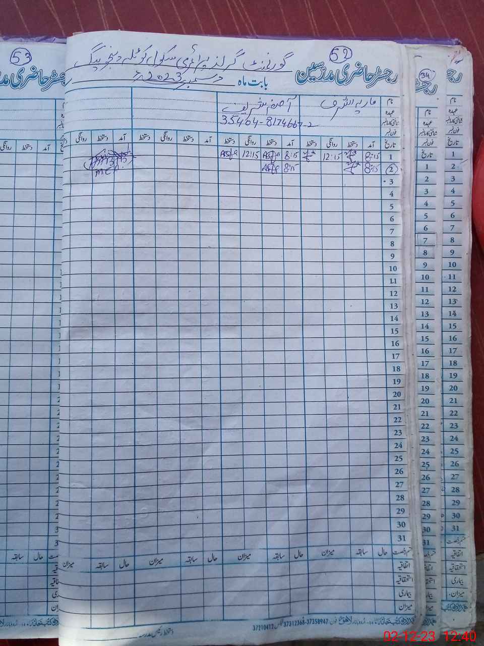 | CNIC | Full Name | Designation | R/C | Absence During Last Calender Month |