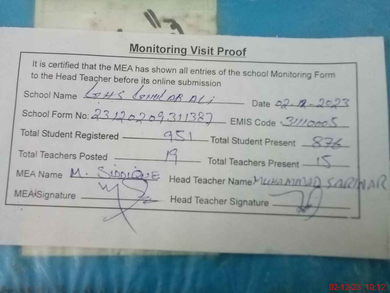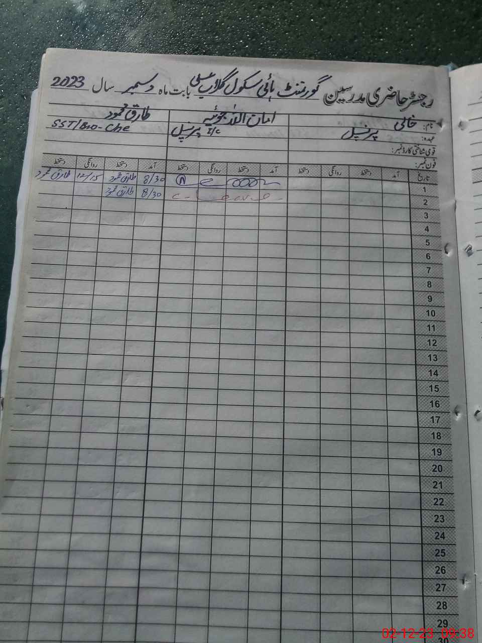 | EMIS Code: 31110005 | Name of School: GHS GULAB ALI | |||