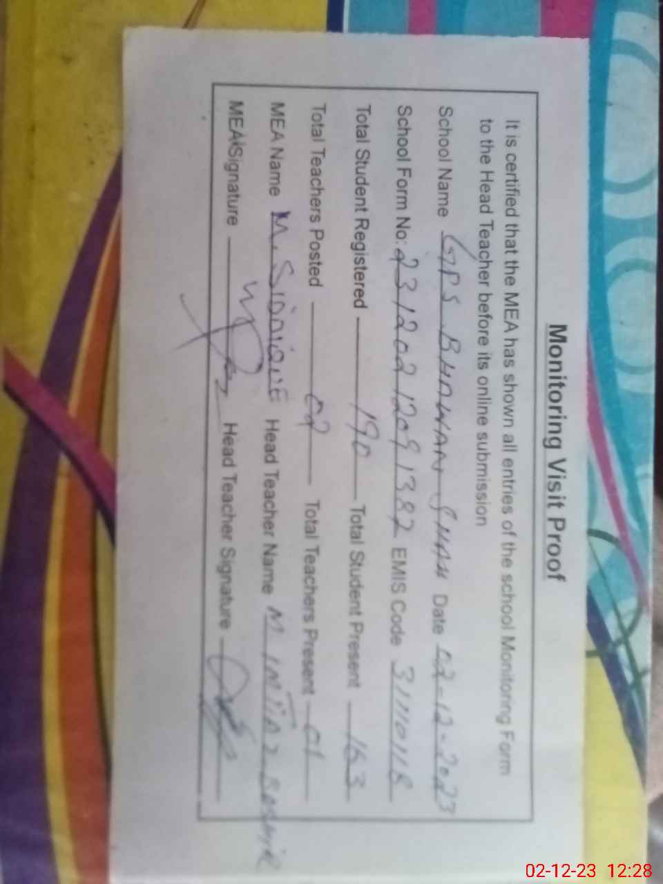 | EMIS Code: 31110118 | Name of School: GPS BHAWAN SHAH | |||