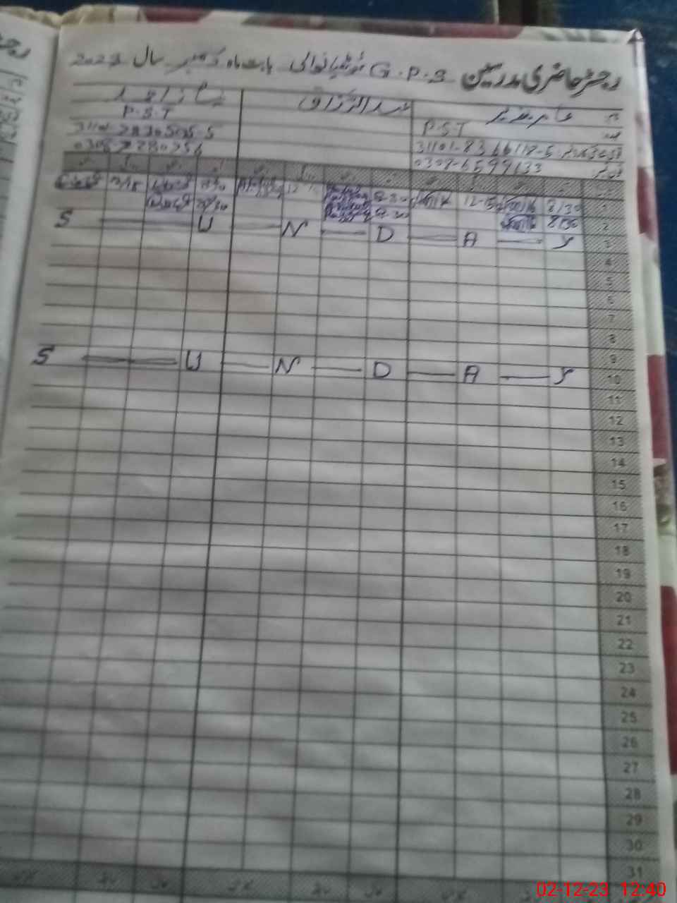 | CNIC | Full Name | Designation | R/C | Absence During Last Calender Month |