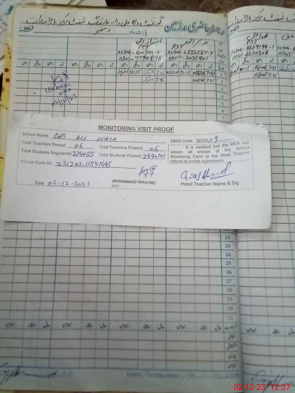 | EMIS Code: 32330119 | Name of School: GPS ALI WALA | |||