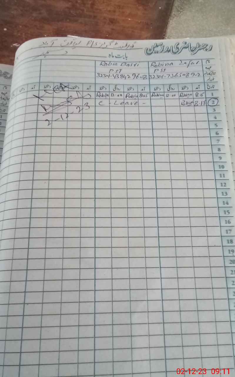 | CNIC | Full Name | Designation | R/C | Absence During Last Calender Month |