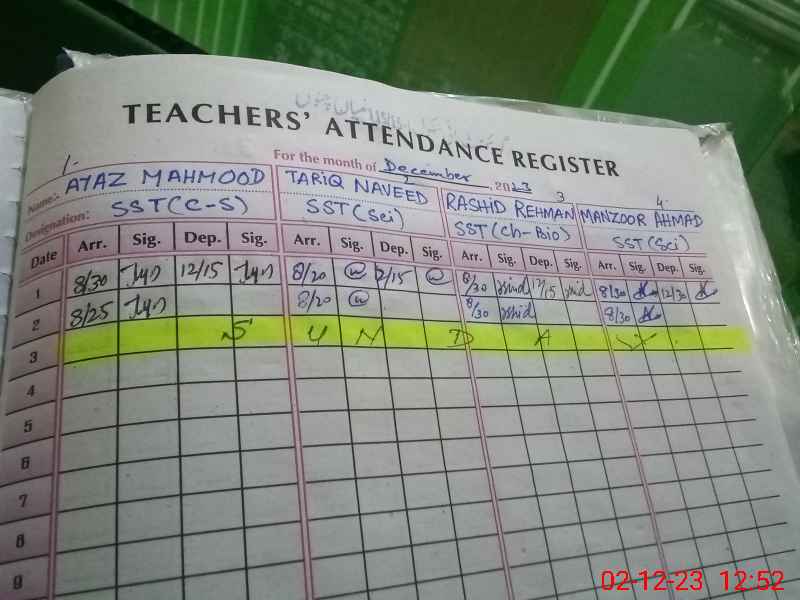 | CNIC | Full Name | Designation | R/C | Absence During Last Calender Month |