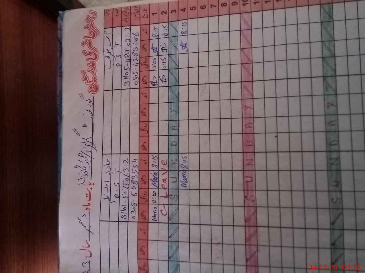 | CNIC | Full Name | Designation | R/C | Absence During Last Calender Month |