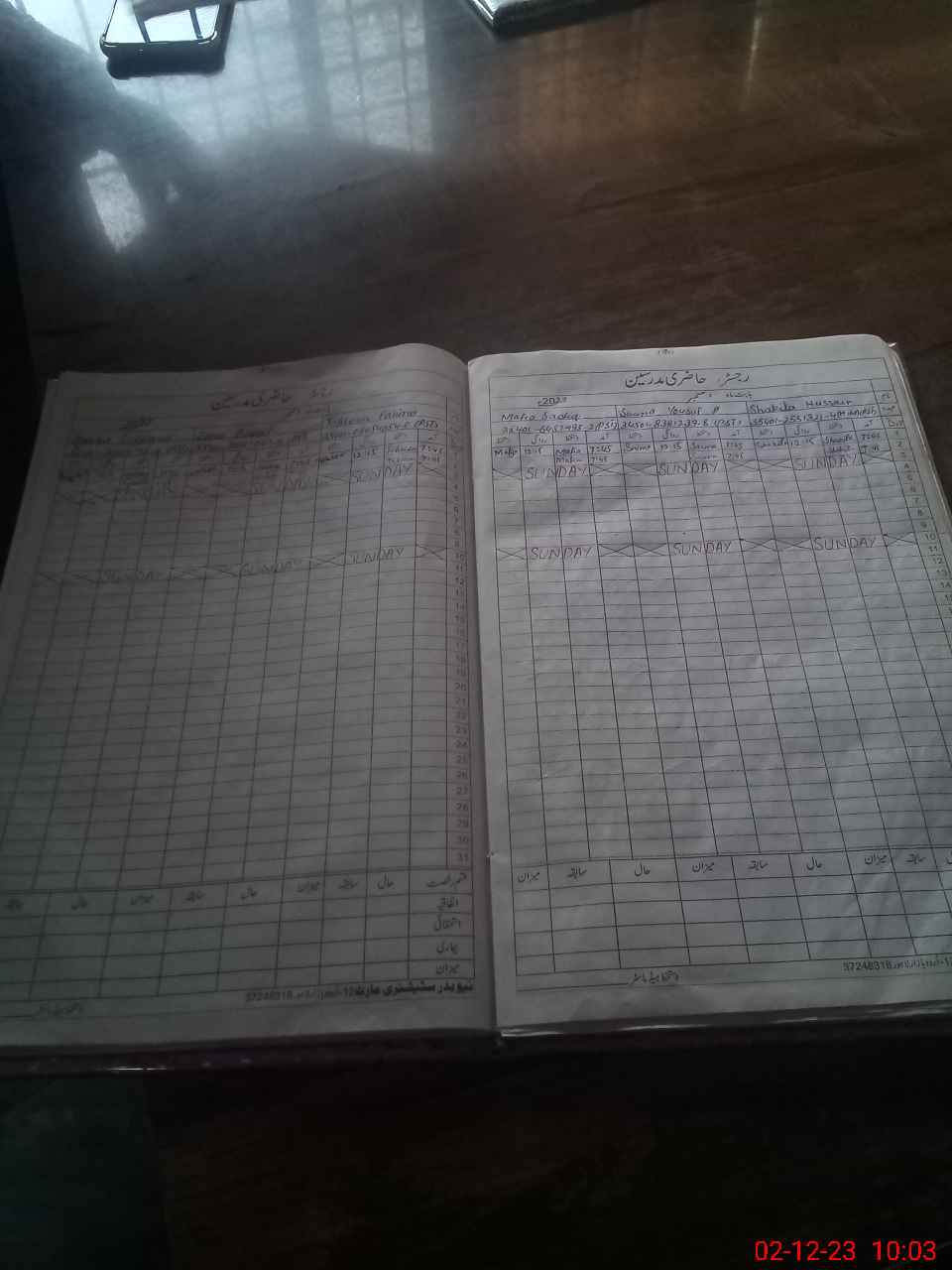 | CNIC | Full Name | Designation | R/C | Absence During Last Calender Month |