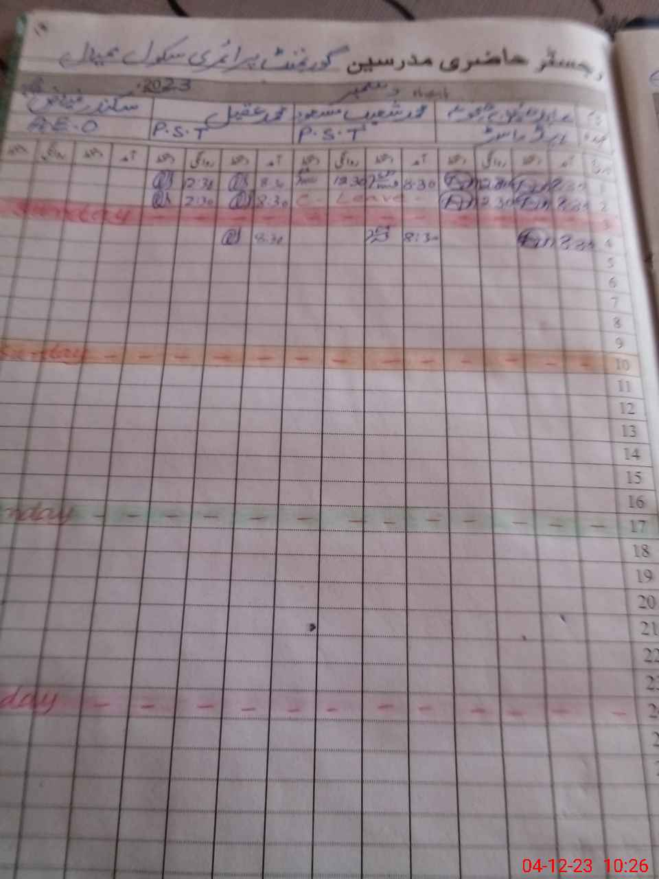 | Name: AB**** HU**** Designation: (School Headmaster's/Headmistress's) PST Phone/Cell Number: 03**** |