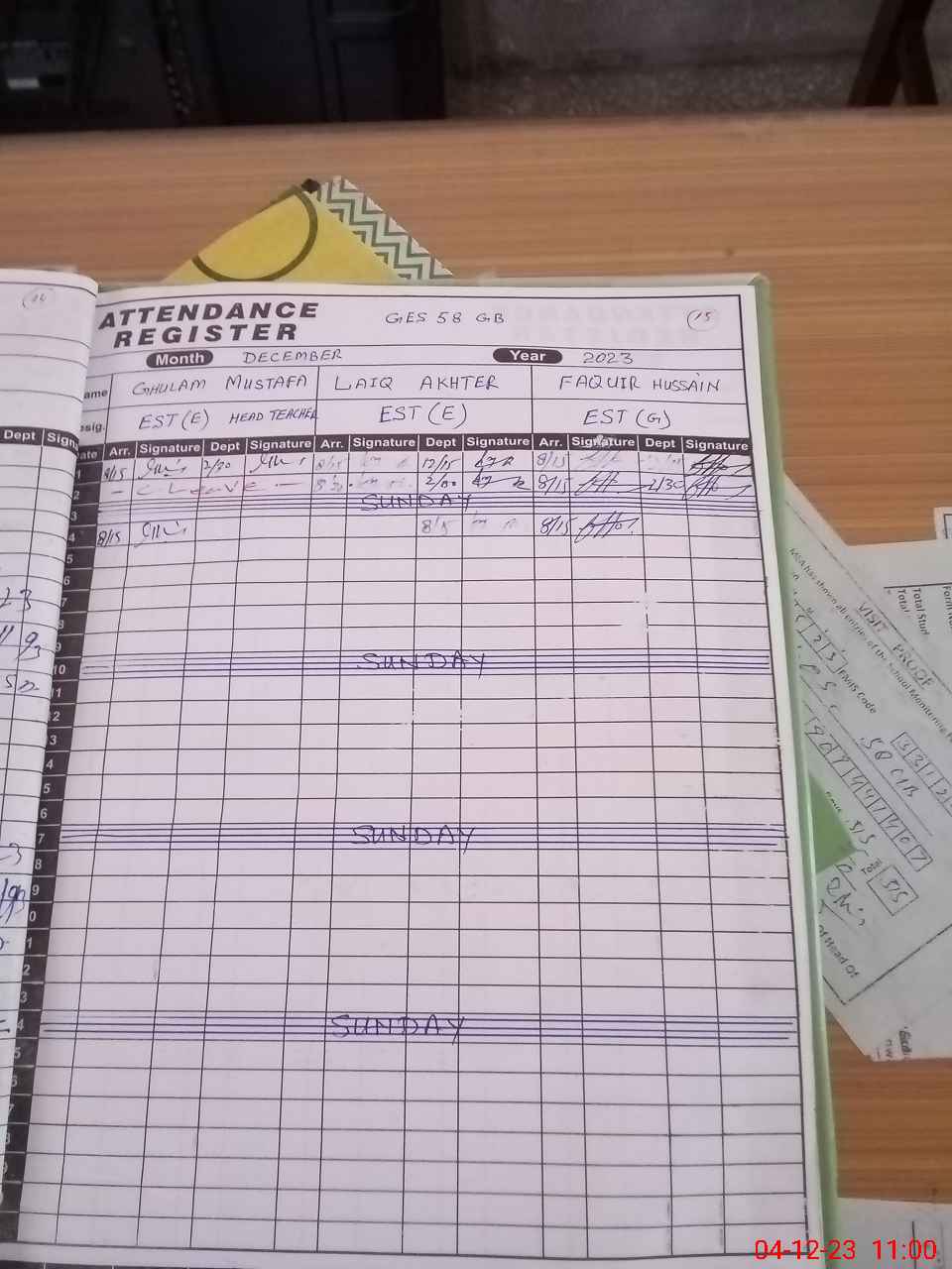 | CNIC | Full Name | Designation | R/C | Absence During Last Calender Month |