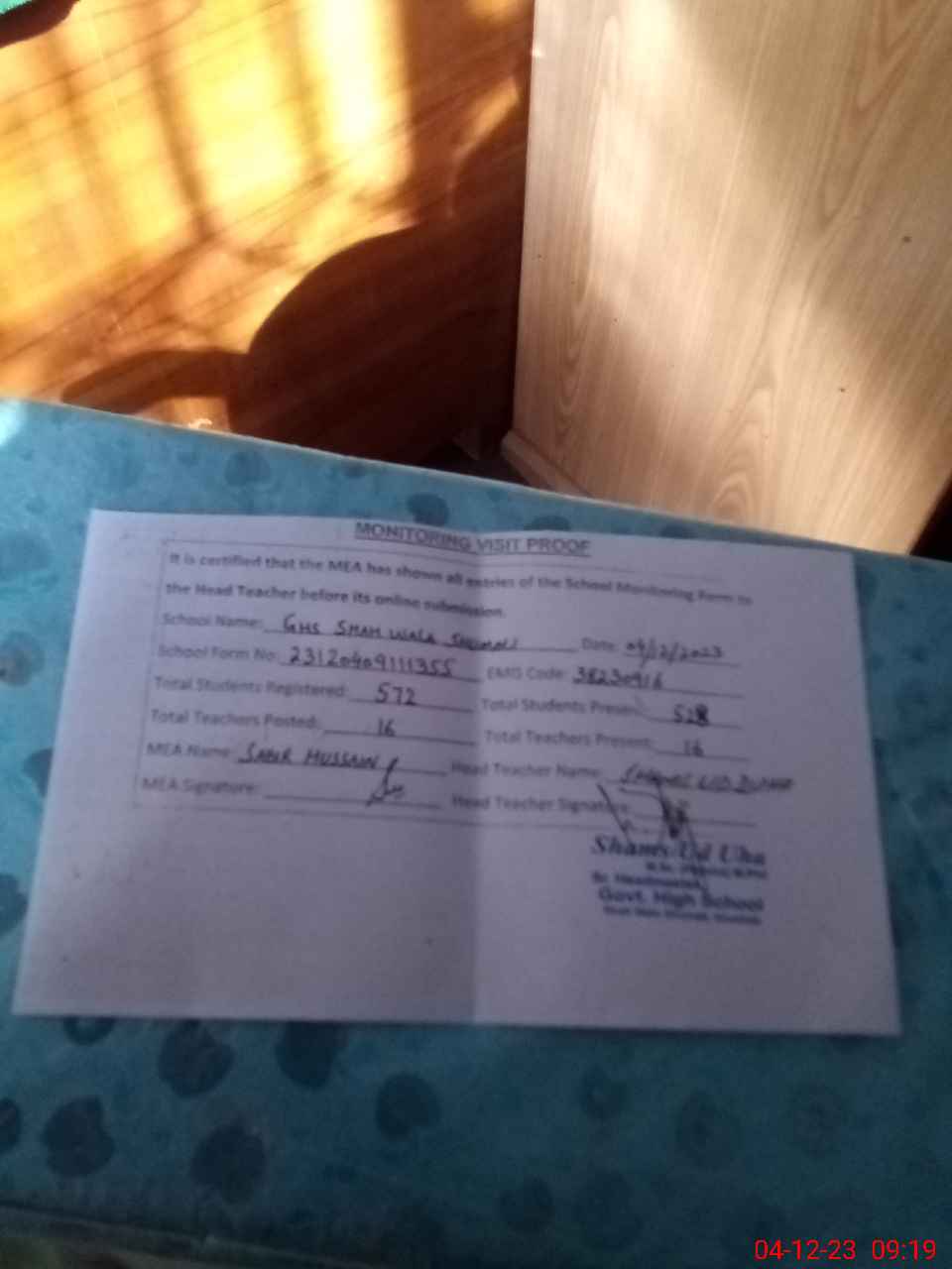 | EMIS Code: 38230916 | Name of School: GHS SHAH WALA SHUMALI | |||