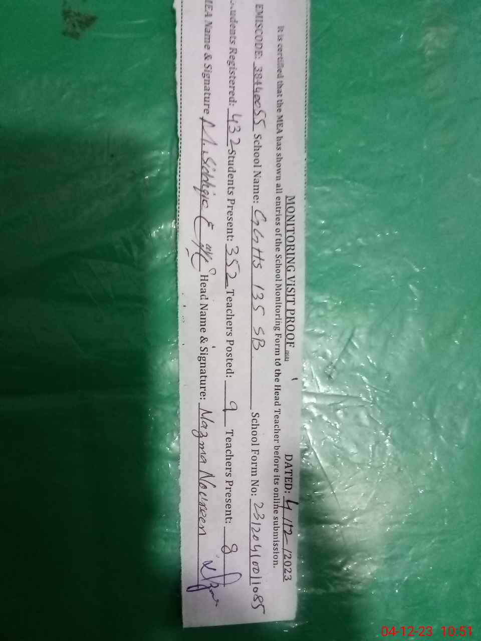 | EMIS Code: 38440055 | Name of School: GGHS CHAK 135/SB | |||