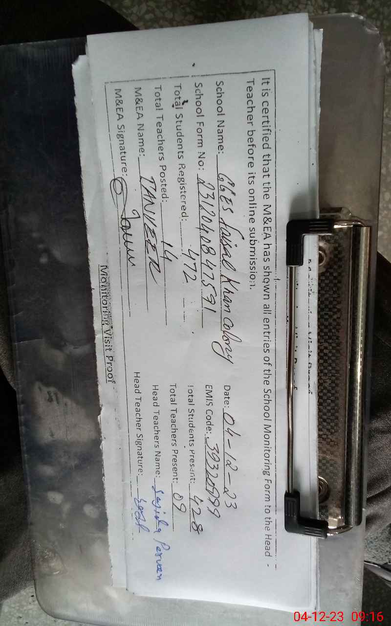 | EMIS Code: 39320999 | Name of School: GGES FAISAL COLONY OKARA | |||