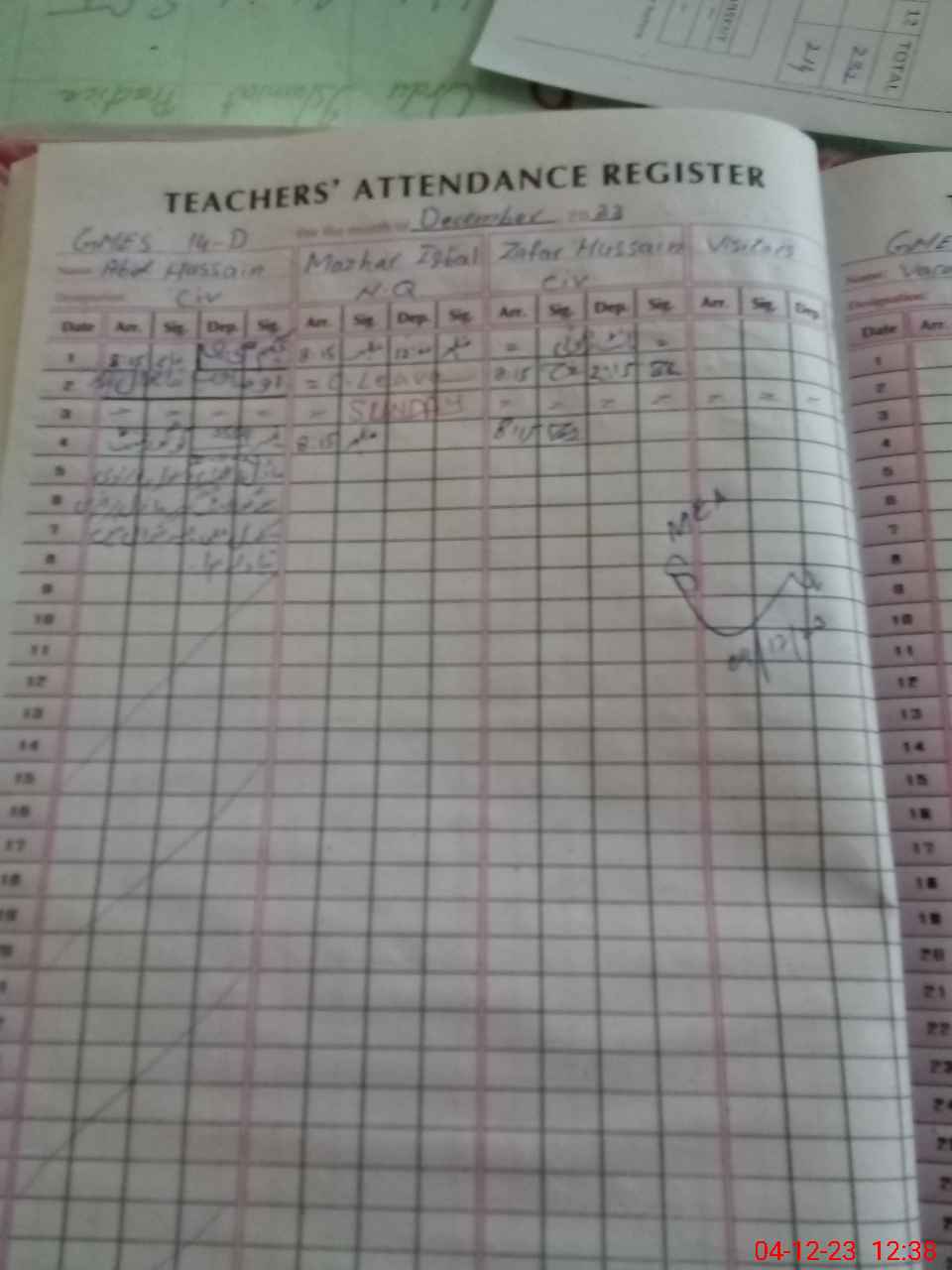 | CNIC | Full Name | Designation | R/C | Absence During Last Calender Month |